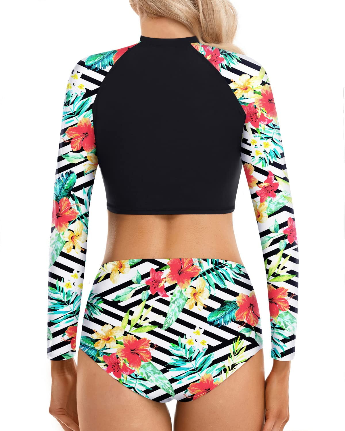 Pinup Fashion Two Piece Rash Guard Long Sleeve Bathing Suits Women Swimsuit Top Tropical Flower Floral With High Waist Short Tankini Set Uv Upf 50 Walmart Com